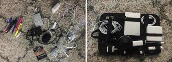 一个有弹性的整理器,可以整理包里翻滚的一大堆电线和充电器